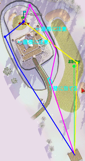 2打目は城の屋根に注意して打てば、バーディは確実です。